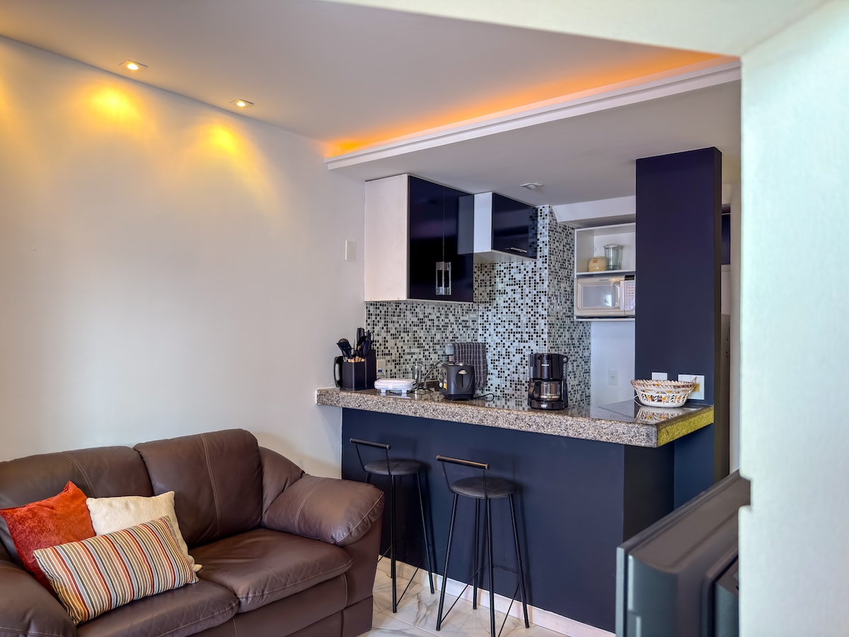 Nosso studio oferece decoração moderna e funcional. Ideal para quem deseja um espaço compacto e aconchegante para uma estada confortável. Destaques do Studio: Cozinha compacta e equipada; Área de refeição; Varanda; Roupa de cama e toalha; Estacionamento (consultar disponibilidade); Ar-condicionado; SmartTV; Wi-Fi; Fechadura eletrônica; Piscina; Sauna; Salão de jogos; Localização excelente (20 metros da praia Areia Preta); Perfeito para a família e grupo de amigos. Proibido fumar.