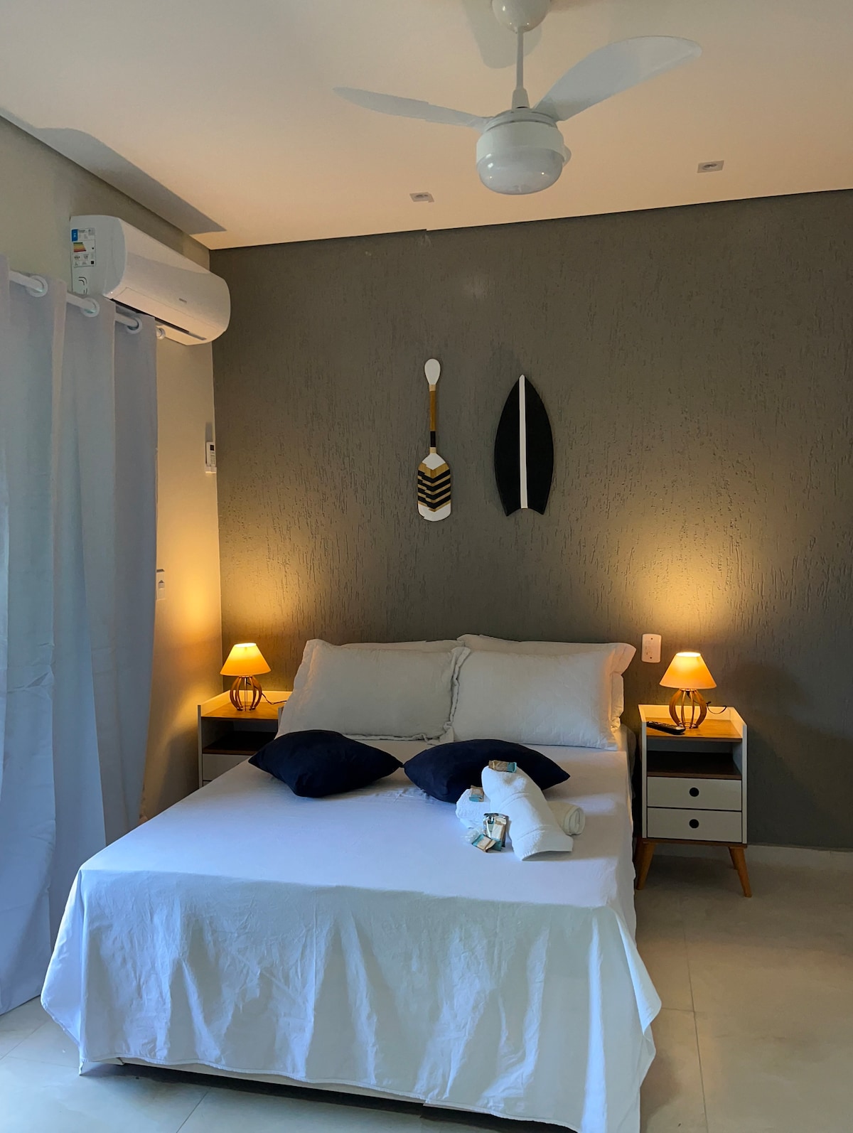 Acorde sentindo-se descansado enquanto a luz suave da manhã inunda as janelas expansivas deste apartamento. Observe o mar enquanto relaxa na área externa da varanda. Desfrute de um sono tranquilo em uma cama queen size com enxoval cheiroso e sinta-se em casa. Na cozinha, prepare seu café delicioso apreciando a melhor vista mar que Búzios têm para oferecer.