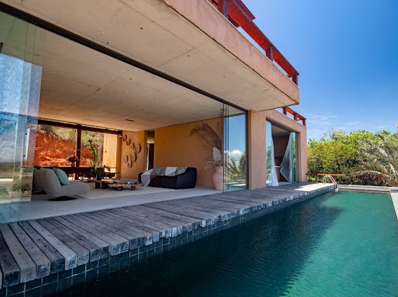 带泳池大屏幕和快艇甲板的房子/ Aretê