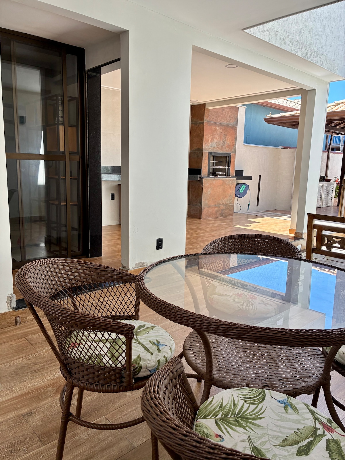 Ensolarada, grande e confortável para sua família curtir e relaxar. A casa tem três salas (TV, estar e jantar), três suítes, varandas, cozinha integrada ao pátio externo, com mesa de refeições, escritório, decks frontal e lateral, churrasqueira, forno Igloo (mineiro), piscina e deck com iluminação. A 600 metros do centro. Linda vista para diversos bairros, centro, Praia do Canto e para o verde. Fácil acesso a pé à Rua das Pedras, à Orla Bardot, às praias Forno, Foca, Ferradura, Brava e Canto.