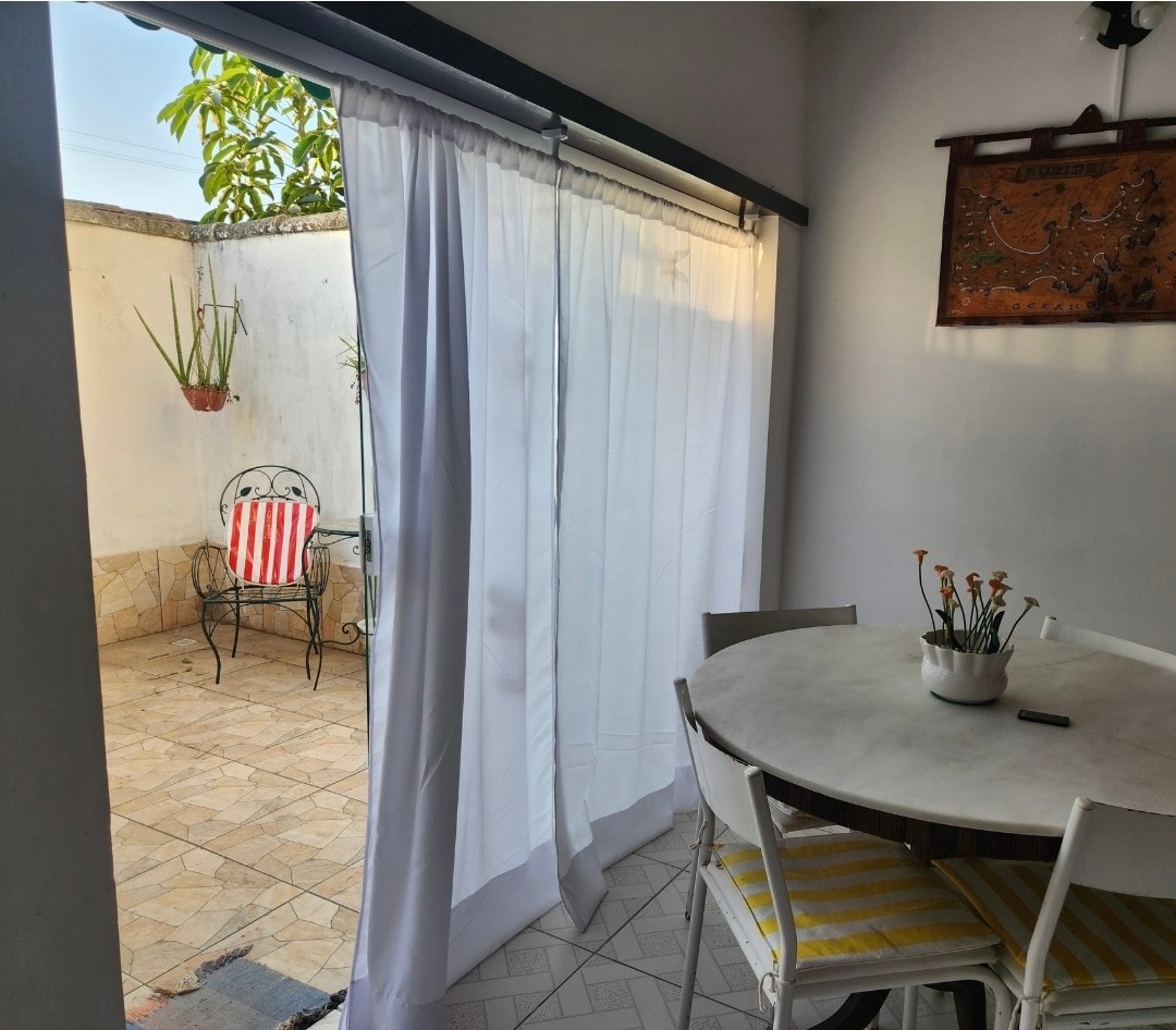 Casa tipo loft com cozinha jardim interno 2 suites 1 no primeiro andar com varanda e a 2 no terreo intrgada no loft com divisorias em tecido. sala ampla com mesa para 12 pessoas , 3 sofas espaçosos. Varanda coberta no jardim interno com mesa de jantar, churrasqueira portatil e ducha. Cozinha toda equipada com utensilios para 6 pessoas. Area de serviço com tanque e varal de roupa. um espaço escritorio com otima conecçao internet. Tudo decorado no estilo Balines. A piscina é compartilhada.