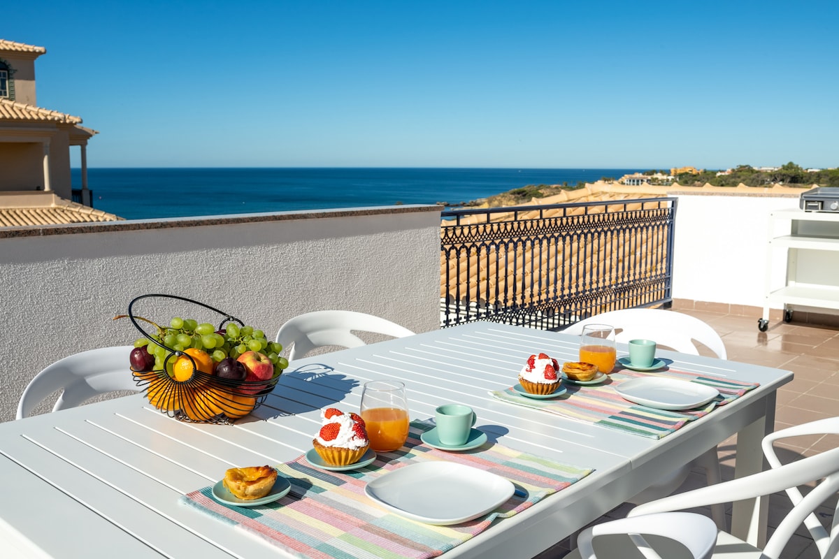 Stunning ocean view with private terrace, 150 mts from Fishermans beach (Praia dos Pescadores). The apartment has 1 + 1 bedroom , AC in the master bedroom, swimming pool and private parking space. Perfect for families with kids or if you want to enjoy the beach on and off throughout the day.