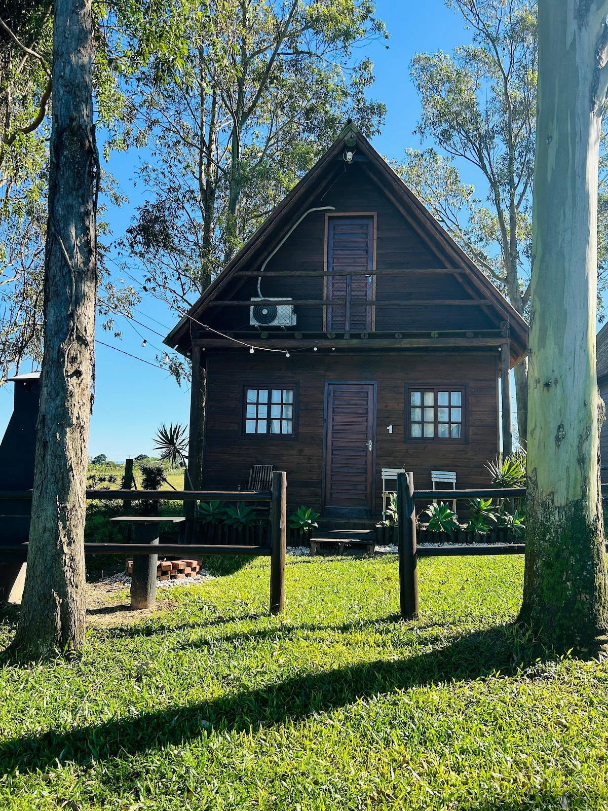 Chalé aconchegante , todo em móveis de madeira demolição . O chalé possui uma vista incrível da banheira ! Você poderá desfrutar de momentos inesquecíveis enquanto aprecia a beleza da lagoa ! Possui piscina , banheira de hidromassagem, lareira interna e caiaques para passeio na lagoa. Chalé possui cozinha completa.