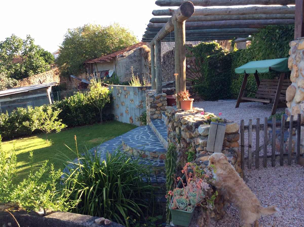 The house is located in the Mondego River Valley on walking distance of a beautifull isolated riverbeach. A great place to get away from the stressed world. Excellent for a couple or an individual who loves the simplicity, purity and silence of nature. The house includes an open kitchen and living room, a 11 m2 mezanine for sleeping, an outside shower, compost toilet in a 5000 m2 forest garden with granit boulders, natural structures, sculptures and chillout places.