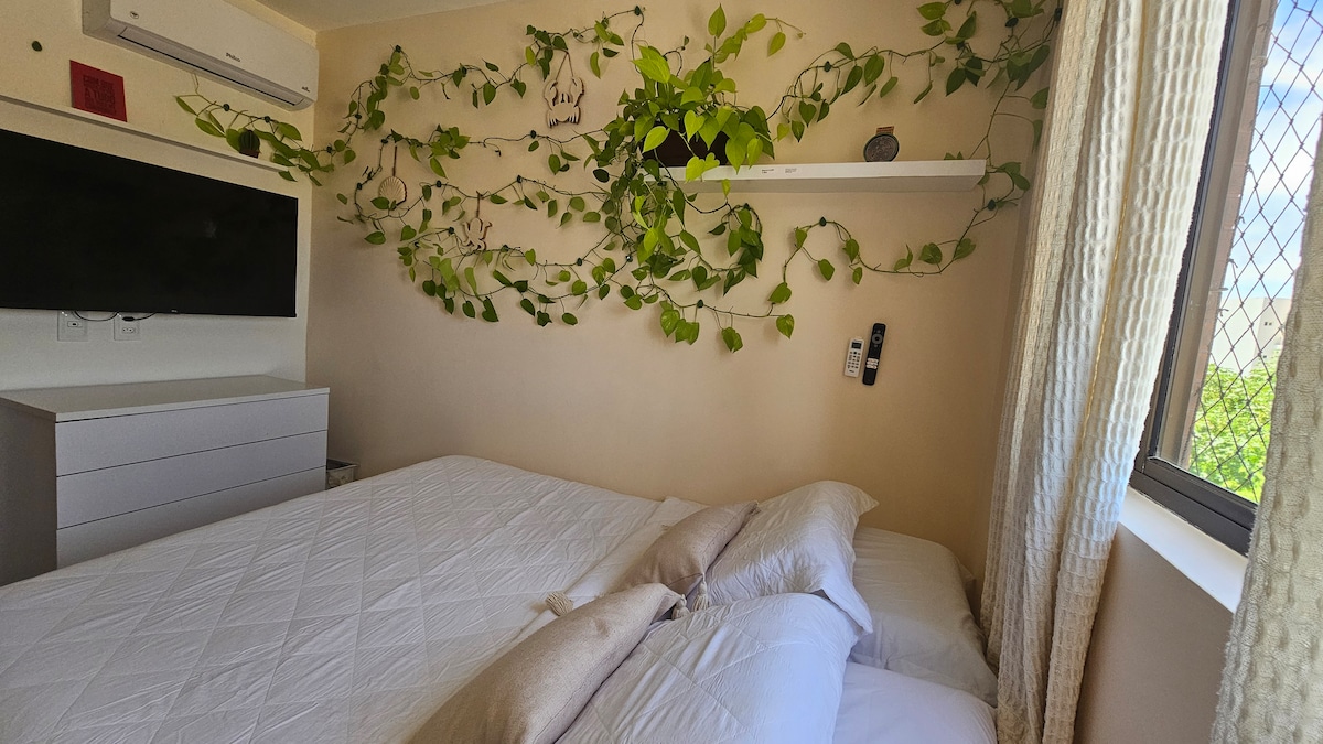 Apartamento novo, espaçoso e muito aconchegante. Quarto com ar-condicionado, cama casal box queen size. Disponibilizamos lençol, travesseiro, toalhas, ferro de passar roupa e secador de cabelo. Na Varanda tem rede para você aproveitar a brisa do mar. Cozinha equipada com copos, talheres, pratos, panelas e cooktop. Além de sanduicheira, airfryer, cafeteira, liquidificador e microondas, Na sala um sofá cama de casal e TV. Disponibilidade de até 4 pessoas. Wi-fi e estacionamento são gratuitos.