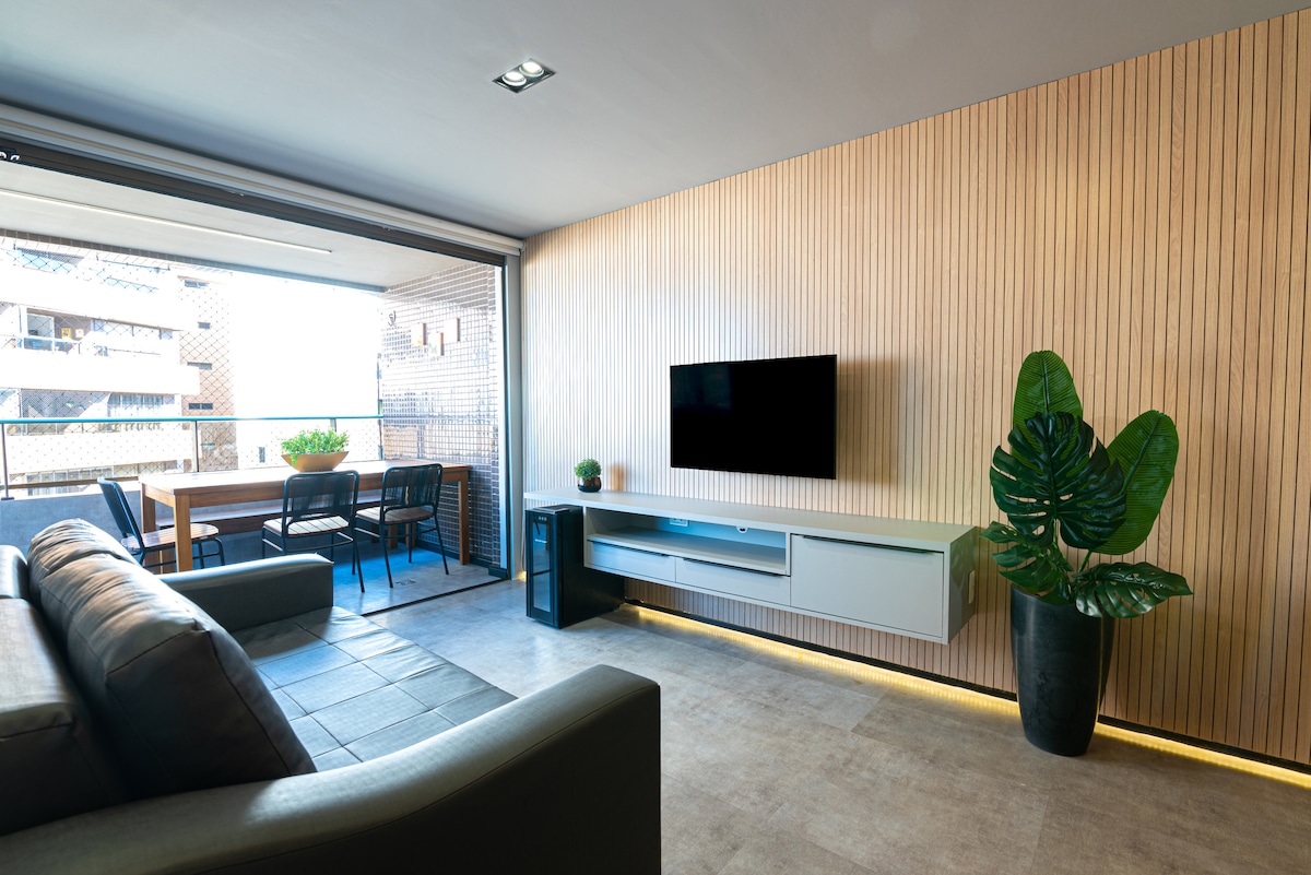 Apartamento novo, espaçoso e muito aconchegante. Quarto com ar-condicionado, cama casal box queen size. Disponibilizamos lençol, travesseiro, toalhas, ferro de passar roupa e secador de cabelo. Na Varanda tem rede para você aproveitar a brisa do mar. Cozinha equipada com copos, talheres, pratos, panelas e cooktop. Além de sanduicheira, airfryer, cafeteira, liquidificador e microondas, Na sala um sofá cama de casal e TV. Disponibilidade de até 4 pessoas. Wi-fi e estacionamento são gratuitos.