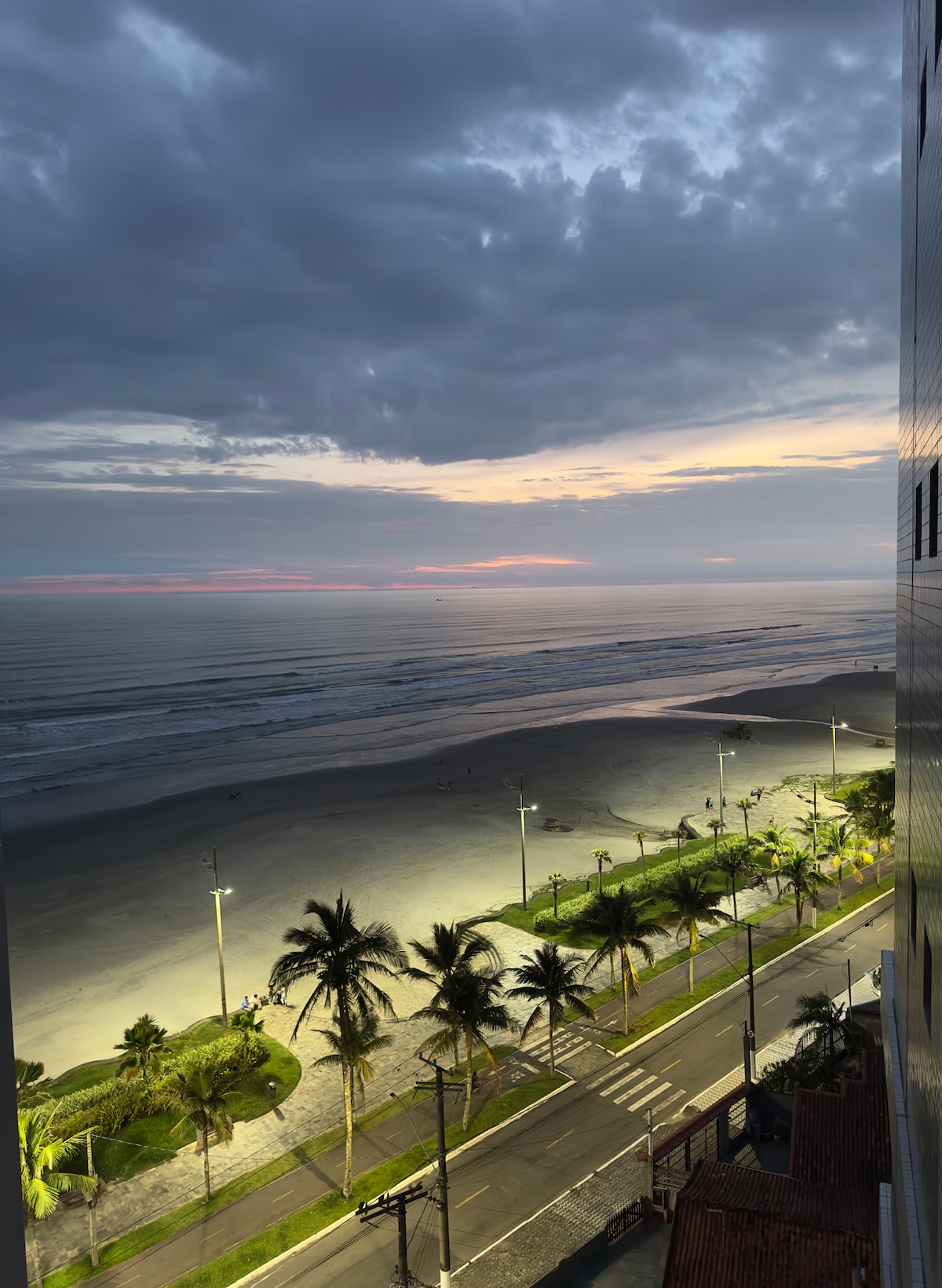 Vista frente mar total maravilhosa em um lindo apartamento decorado frente mar total 2 dorms, (1 suíte). Ar condicionado. O mais belo e encantador nascer no sol, juntamente com o delicioso barulho do mar! Você irá sentir uma paz e ficará encantado com essa experiência! Além disso tenha o privilégio de presenciar o pôr do sol frente mar numa sala de estar e jantar linda com ar condicionado, móveis de altíssima qualidade, tvs smart, cafeteira Nespresso, cozinha completa com fogão indução.