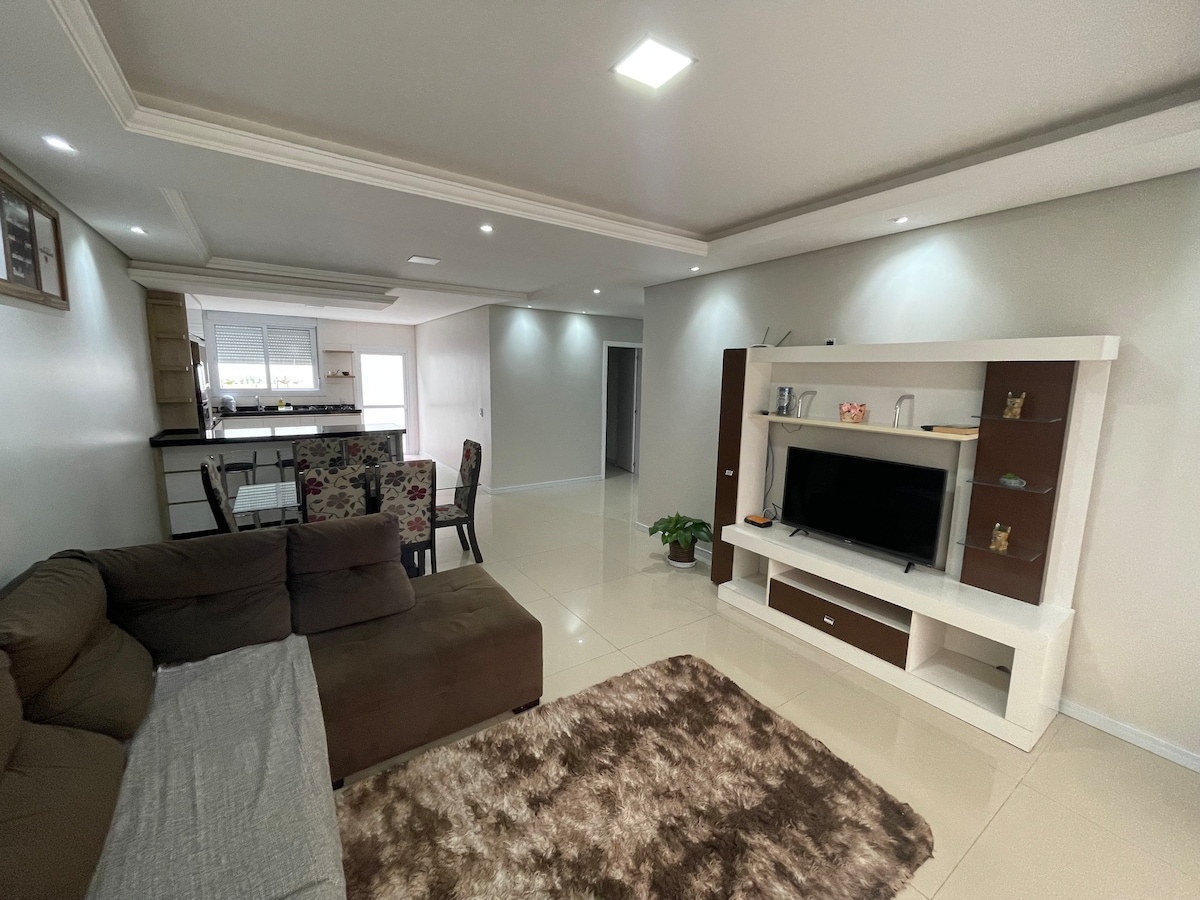 Casa com três quartos, sala e cozinha conjugada, dois banheiros, ar condicionado e área de lazer com garagem. Cozinha completa, microondas, airfryer, jarra elétrica, liquidificador e forno elétrico. A casa fica próxima ao maior mercado da cidade, padaria e restaurante. Praia Grande é o lugar ideal para quem quer ficar perto da Serra e da Praia. Muitas opções de trilhas e passeios, como voo de balão. A apenas 30 min da Praia de Torres RS e 3km da subida da serra do Faxinal!!