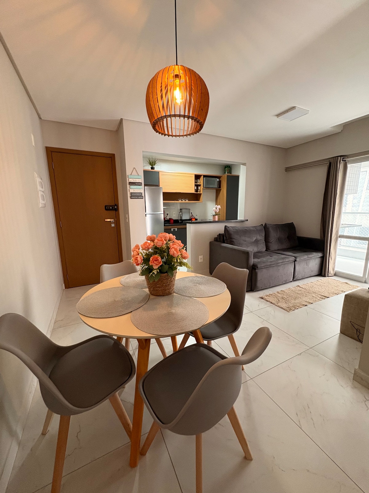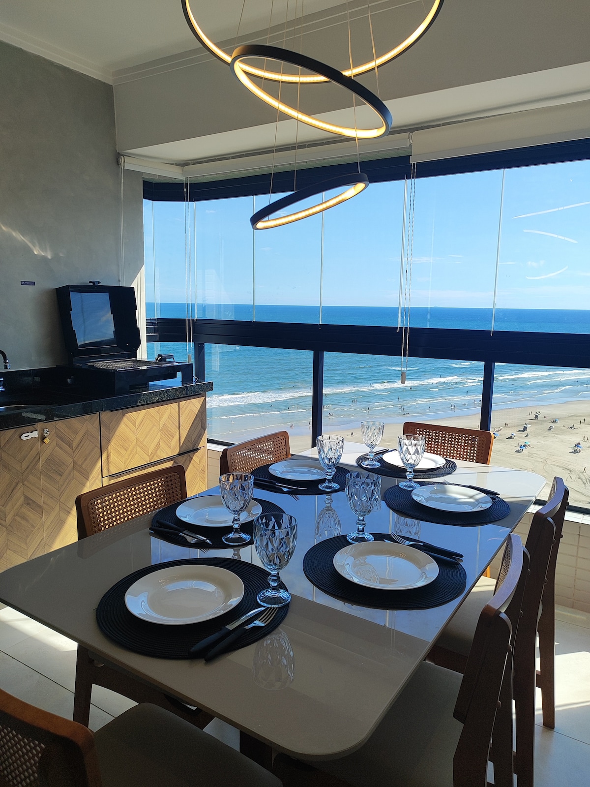 Acomoda com conforto toda a família até 6 pessoas :1 cama de casal+beliche+2 colchões de solteiro Cozinha planejada completa e equipada Cooktop🍳 Lavanderia com máquina lava e seca Sala ampla com TV📺 Sacada na sala e no quarto Sacada gourmet com churrasqueira a gás integrada🥩 1 vaga de garagem🚗 Wi-Fi Ar-Condicionado No quarto❄️ Ventilador Ap novo recém entregue Roupas de cama Tudo isso de frente para o mar🌊 Ambiente acolhedor e funcional, ideal para relaxar ou curtir com quem você ama!