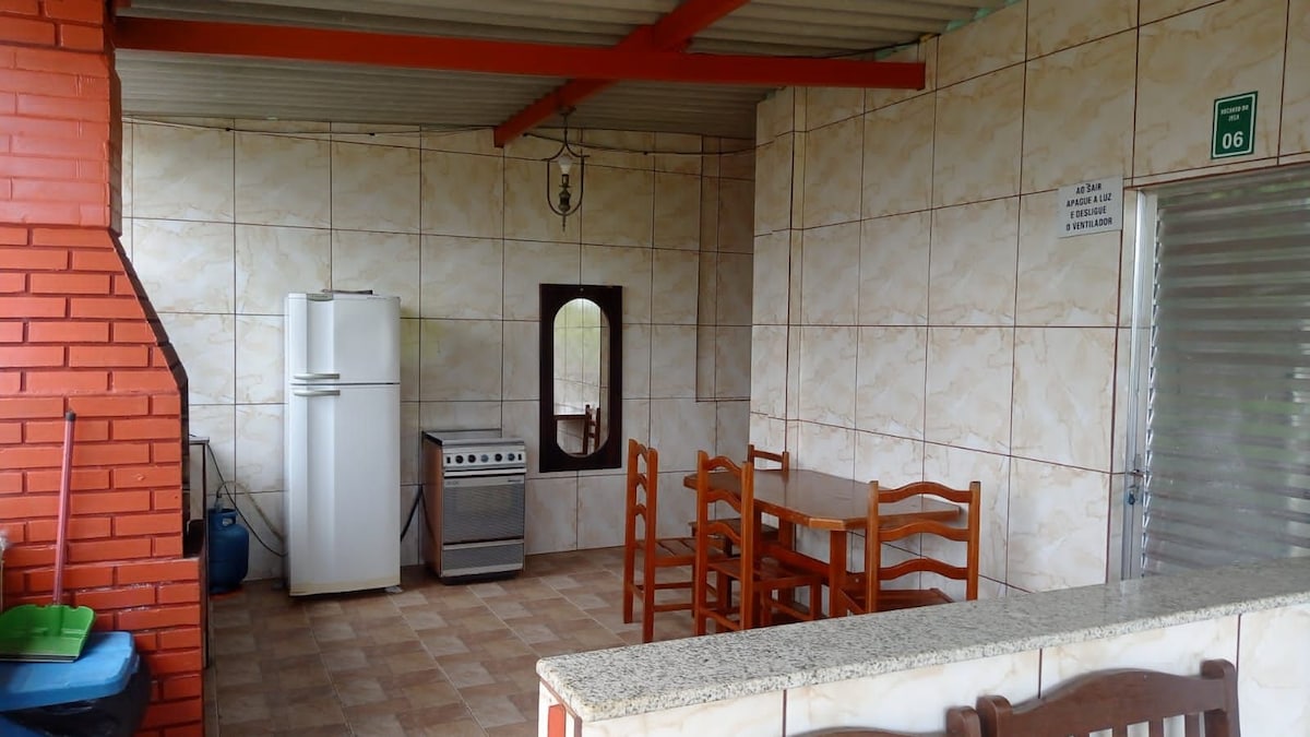 Residência ampla, ensolarada, com churrasqueira individual, equipada com ventiladores, inclui piscina, estacionamento grátis, localizada em rua segura e tranquila. Colchões e travesseiros com revestimento impermeável, fornecemos roupas de cama. Conta com banheiro e cozinha totalmente equipada. TV smart, WiFi disponível e mercado com caixa eletrônico a 900 metros, além de uma padaria na esquina. Pousada com bar exclusivo, sinuca, fogão a lenha, lago, pebolim, animais e acesso a cachoeira.