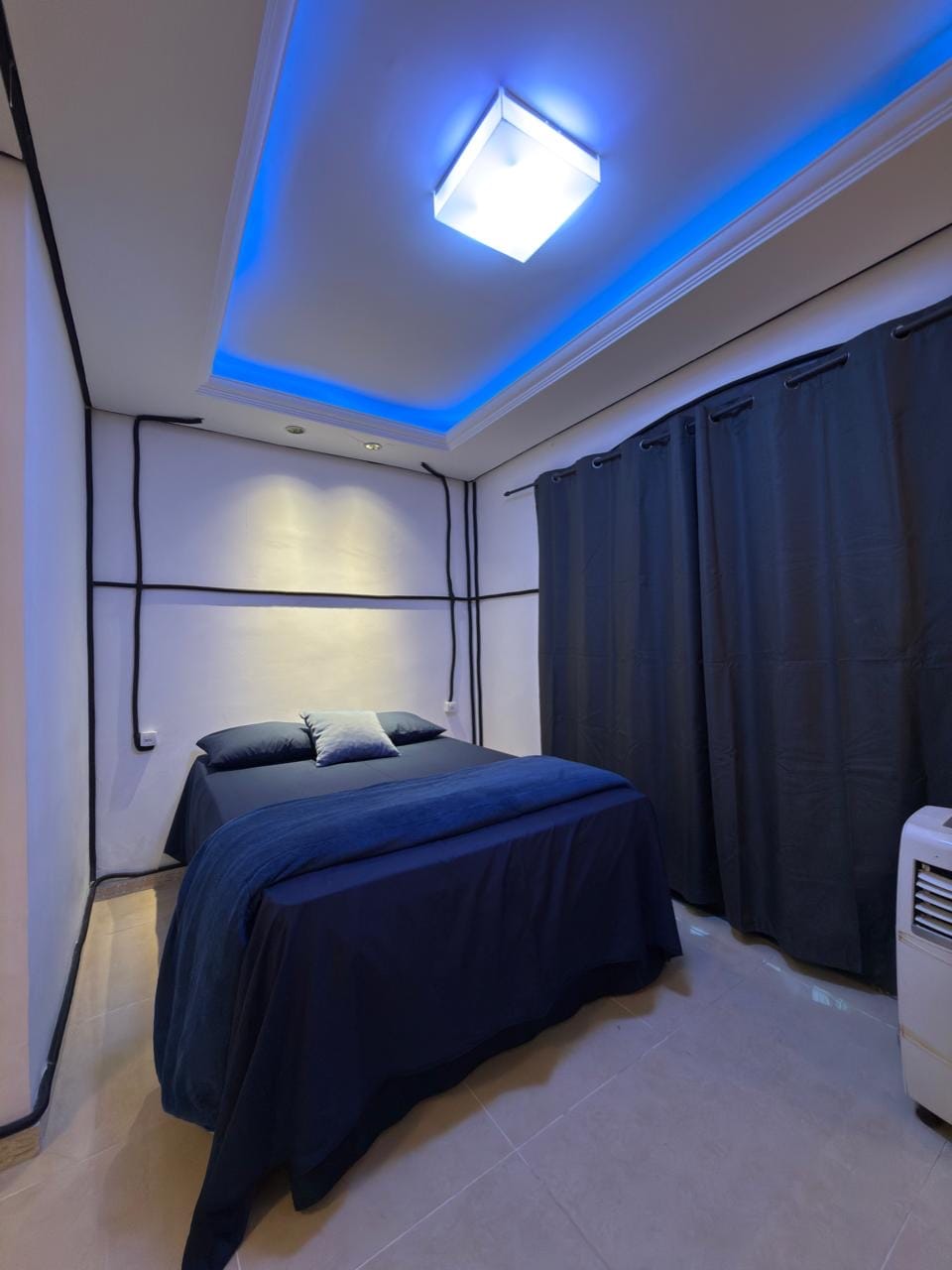 Apartamento Studio com vista para a piscina, no Unlimited Ocean Front em Santos. Para facilitar o checkin e checkout dos hóspedes, temos sistema de abertura de porta com cartão, de forma que o hóspede não depende de ninguém para acesso ao apartamento. O apartamento conta com cama queen, guarda roupa, cortinas blackout, sofa de 2 lugares (com cama de casal) smart tv 49', Wif-fi (500mb), iluminação moderna toda em led , ar condicionado split, rede de proteção na varanda. 1 Vaga de garagem