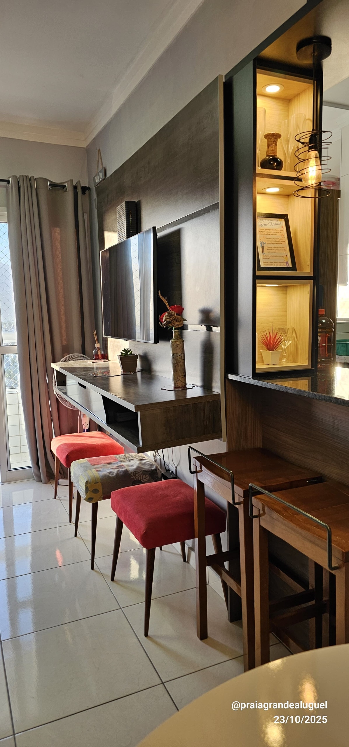 Apto novo na Praia Grande, completo com todos os utensílios e churrasqueira na varanda, recém construído, com muito estilo e cheio de charme, wifi, e toda comodidade à sua disposição, piscina liberada para os nossos hóspedes. uma vaga de garagem, portaria 24 horas, venha relaxar e desfrutar desse espaço decorado especialmente para voce!