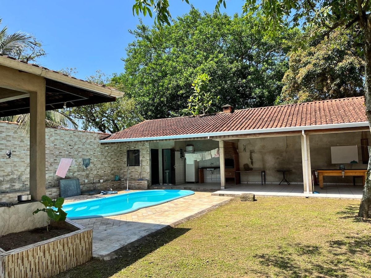 Liberdade, natureza e simplicidade definem esta casa no Guarujá, ideal para quem busca tranquilidade. Localizada na praia mais familiar da região, oferece um ambiente acolhedor com rede ao som de pássaros, frutas no quintal e convivência com a jabuti Juju, da família há 20 anos. A caseira Neide, sempre atenciosa, garante segurança e hospitalidade. A casa conta com utensílios, Smart TV, internet, quartos confortáveis e ventiladores de teto. Em constante melhoria, mantendo a essência simples.