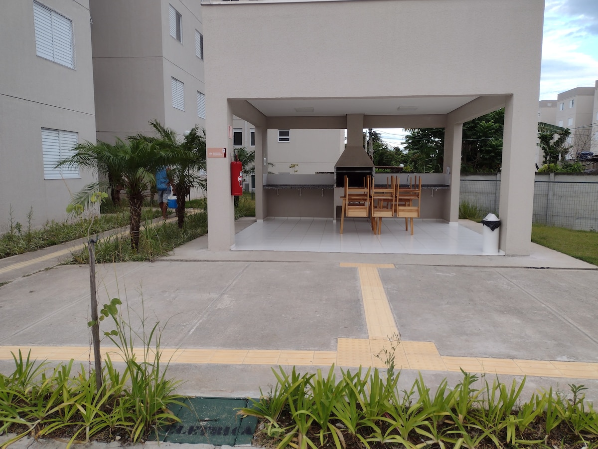 * Aconchegante Apartamento no bairro Ocian a 500 metros da praia em Praia Grande litoral Sul * Com área comum (exceto a churrasqueira) liberada para os hóspedes, parquinho e quadra liberados para as crianças. * 1 vaga de garagem dentro do condomínio inclusa e portaria 24 horas. * Ideal para todos os grupos de hóspedes; Família, amigos etc. * Mercado, açougue, padaria, posto de gasolina, adegas, ferinha de artesanato e centro comercial da Ocian com todos os tipos de comércio, faz tudo a pé.