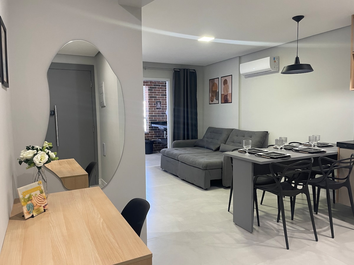 No coração da Praia do Caiçara, o Apê Caiçara 84 é o destino perfeito para quem busca conforto e sofisticação a poucos metros do mar. O design moderno, o ambiente acolhedor e a localização privilegiada fazem deste espaço o lugar ideal para casais e amigos viverem dias inesquecíveis no litoral sul Viva momentos inesqueciveis Destrute de um apartamento completo,totalmente mobiliado, decorado e equipado com enxoval de cama e banho Com mais de 30 itens de lazer liberados e a menos de 300m da praia