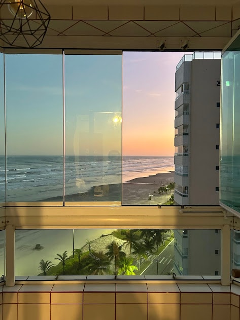 Apartamento charmoso de frente para o mar (pé na areia) ideal para quem gosta de tomar uma cervejinha, vinho ou café sentindo a brisa do mar com uma vista incrível. O apartamento possui Wi-Fi e fica na Praia do Maracanã - Praia Grande e possui um calçadão com as características da orla dessa cidade, com ciclovias, bancos de pedra e coqueiros. Perfeito para quem curte praticar esportes, caminhar no calçadão, andar de bicicleta, pegar uma praia ou trabalhar Home Office com uma linda vista pro mar.