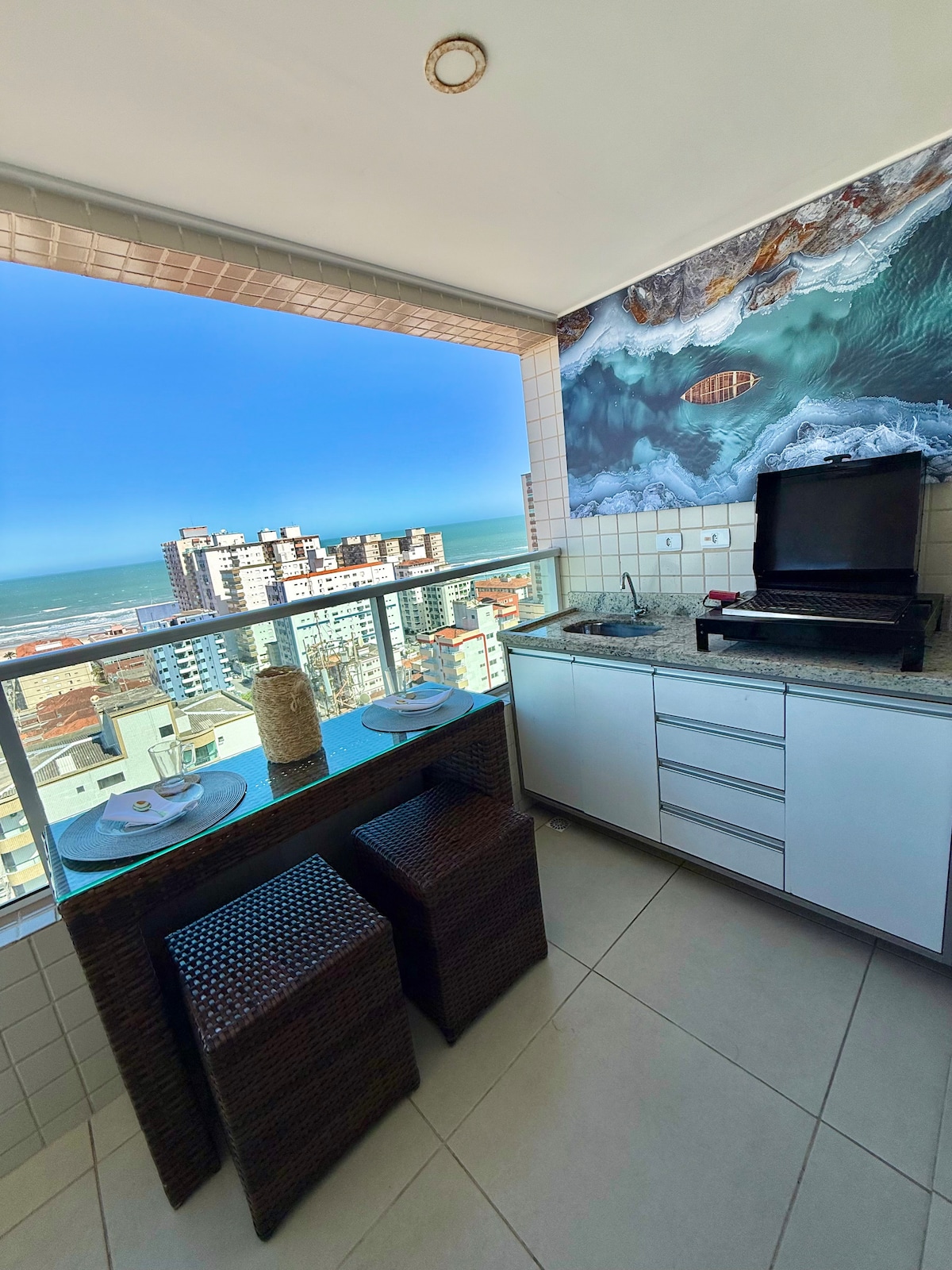 📍 Faça tudo a pé! * 50m do Carrefour, Extra, farmácias, feirinha e inúmeras bares, restaurantes, McDonald's, Habib's e Av. Costa e Silva. 🌊 VISTA DESLUMBRANTE- Beira-mar - Praia Guilhermina! 🕗 Flexibilização do check-in e check-out, zero taxa e dentro das possibilidades. 🗝️ Self Check-in 📶 Wi-Fi fibra - 400 Mega. 📺 SmartTv-50 Pol. 🍖 Kit churrasqueira. 🪟 Envidraçamento sacada. 🛌 Roupa de cama e banho - 100% algodão