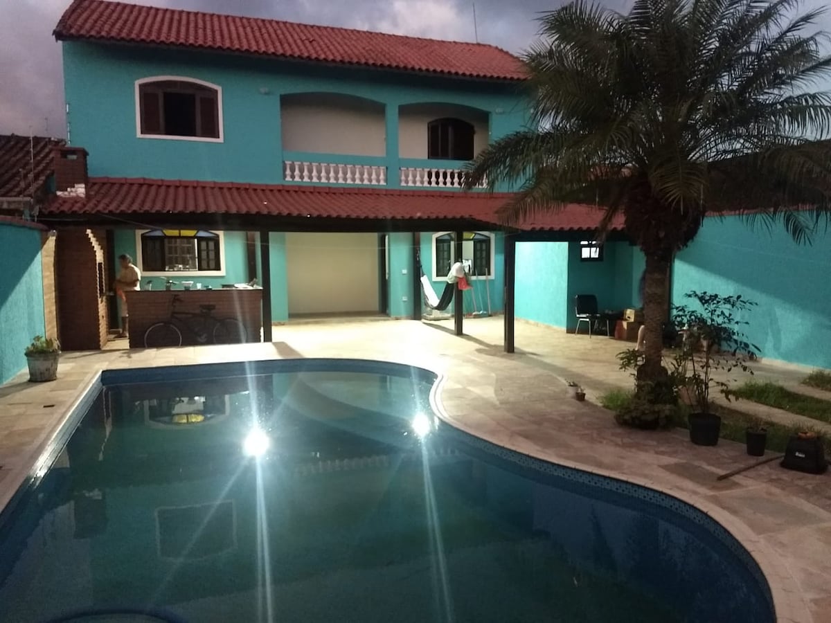 Venha passar seu feriado aqui nesse sítio maravilhoso!!!! Há 7km da praia, conhecer a Plataforma de Pesca de Mongaguá. Casa térrea com 4 suítes, cervejeira, piscina, wifi, playground, mesa de bilhar, mesa pimbolim, churrasqueira, garagem privativa. Sítio próximo a Cachaçaria Fazenda, Pesqueiro Tô na Boa e Cachoeira. Um paraíso!!!!! Alugamos com a cervejeira vazia (itens de bebidas por conta dos hóspedes). Possui câmera de monitoramento na área externa da casa.