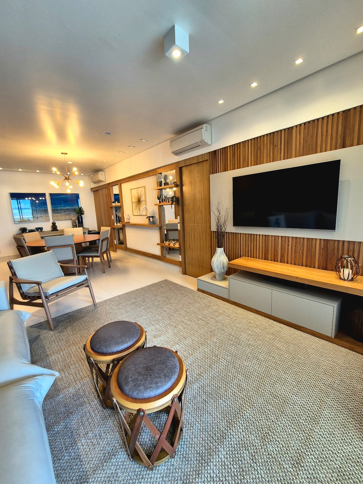 ** Datas abertas para o Natal, Reveillon e férias de Janeiro. Opções disponíveis com valores melhores e condições especiais. Entre em contato.** Apto moderno e confortável com churrasqueira, varanda gourmet com Fechamento em Vidro e vista parcial para o mar. Situado ao lado da entrada da praia, no módulo 7, possui Serviço de Praia diário, Wi-Fi rápido, Piscina Aquecida, 1 suíte master com cama queen, e 1 quarto amplo com 4 camas de solteiro. O apto possui Ar Condicionado em todos os ambientes.
