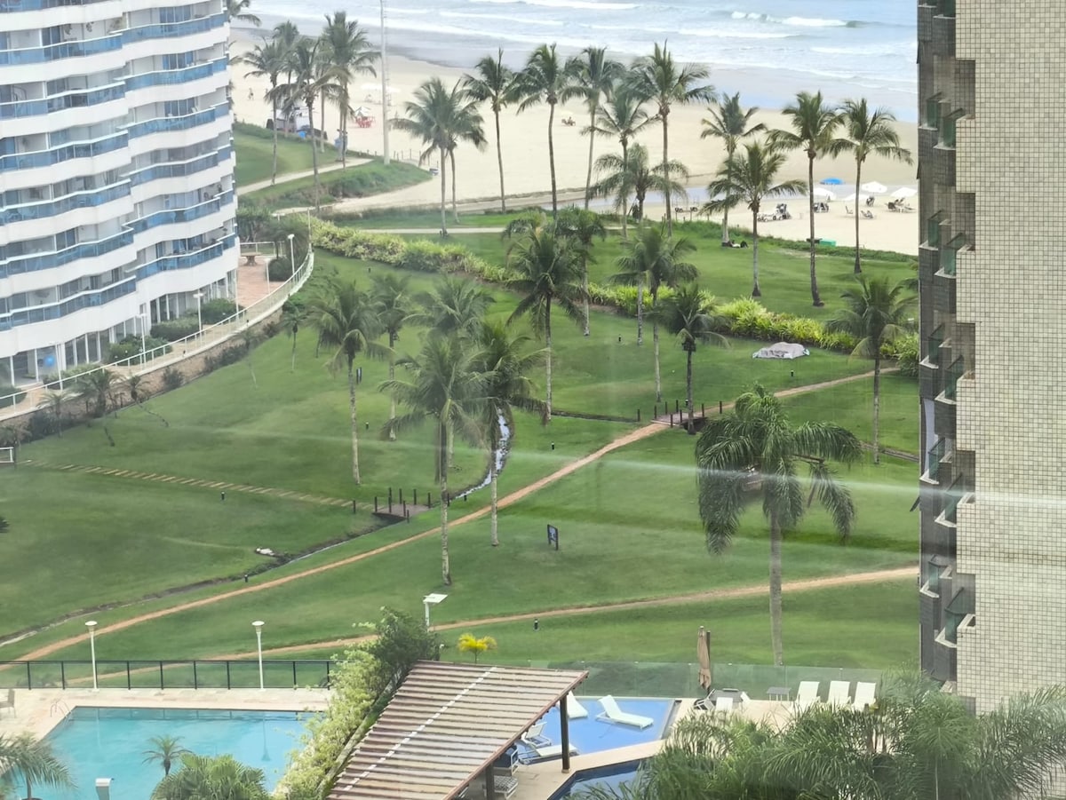 ** Datas abertas para o Natal, Férias de Janeiro e Carnaval. Pacotes com Desconto, valores melhores e condições especiais! Entre em contato.** Apto moderno e confortável com churrasqueira, varanda gourmet com Fechamento em Vidro e vista parcial para o mar. Situado ao lado da entrada da praia, no módulo 7, possui Serviço de Praia diário, Wi-Fi rápido, Piscina Aquecida, 1 suíte master com cama queen, e 1 quarto amplo com 4 camas de solteiro. O apto possui Ar Condicionado em todos os ambientes.