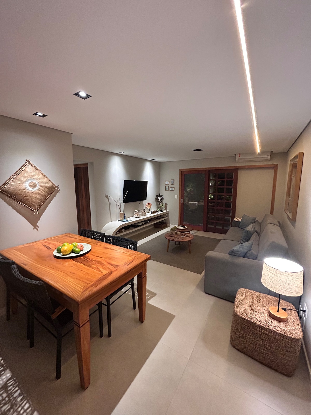 High standard house, in a closed condominium, and dead end street, spacious and airy house, 24h concierge, parking spaces for 3 cars, hosts up to 10 people comfortably Air conditioning in all rooms, blackout curtain, and home-office table, we have external and private deck with night lighting, landscaping, and private barbecue. In the condominium we have an adult swimming pool, children's pool, sports court, tennis court, playground, games room and beach service, all for your peace and comfort