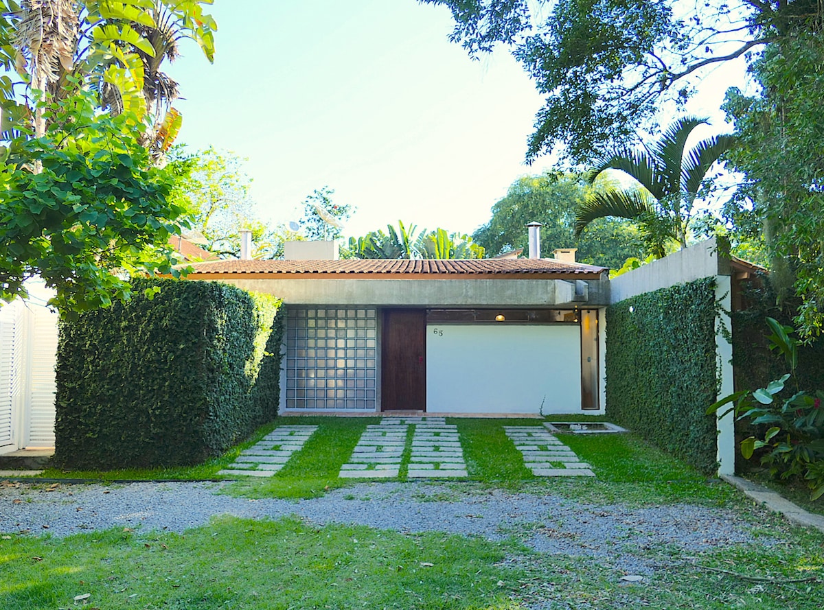 Casa em condomínio fechado, decoração charmosa moderna rústica, a apenas 7min da praia caminhando e 2 min dos principais restaurantes e SM. Rodeada pelo verde da Mata Atlântica, recém reformada, 3 vagas de garagem, 3 suítes de casal que acomodam confortavelmente até 6 pessoas e 3 crianças. A cozinha é para quem aprecia se entreter com familiares e amigos enquanto cozinha, pois é integrada com a sala bem ampla, churrasqueira e piscina privativa. Dias frios temos lareiras e dias chuvosos sala TV.