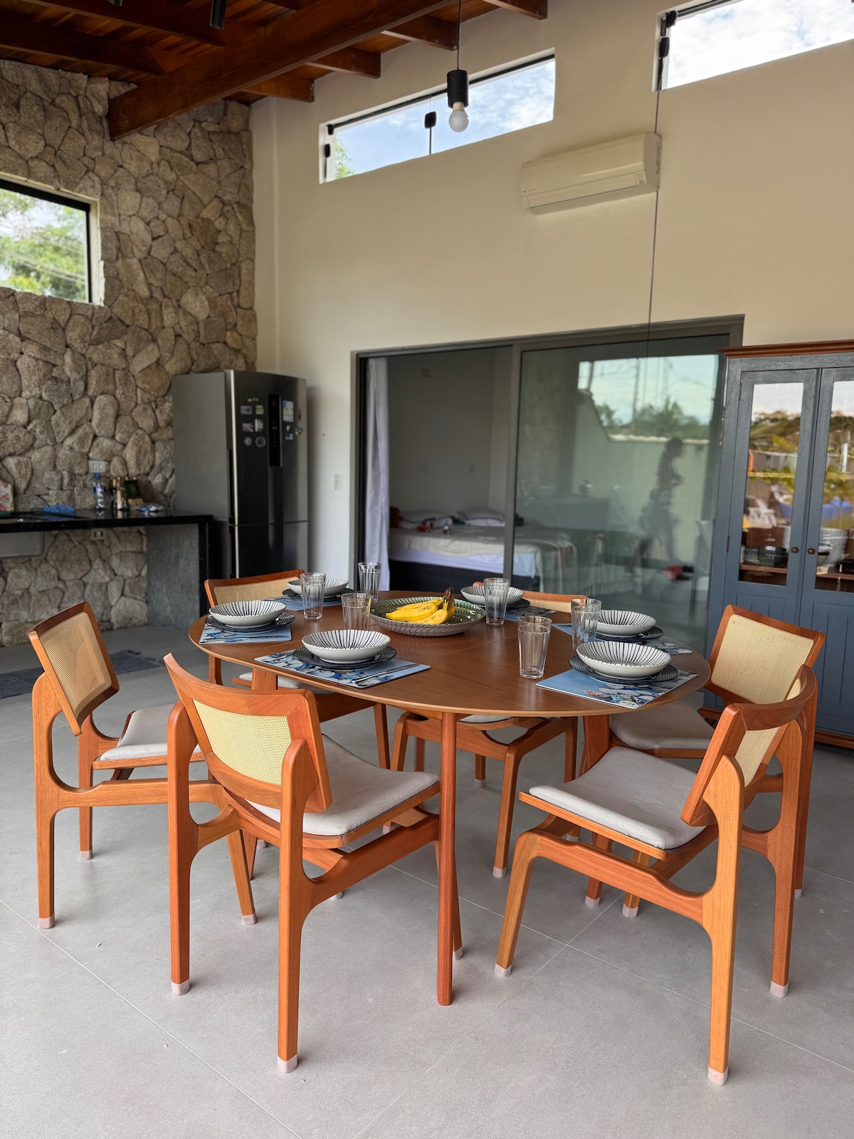 Frente ao mar, com uma vegetação exuberante, esta elegante acomodação é perfeita para viagens em grupo. Conta com quatro amplas suítes, camas Queen e de solteiro. Nas duas confortáveis salas você pode desfrutar de poltrona para leitura, ouvir música, ou relaxar deitado vendo TV (smartv de 55 polegadas). Mas se o seu hobby for cozinhar, nossa área gourmet vai te agradar. Temos forno a lenha, forno de pizza e churrasqueira, além de uma cozinha completa com tudo o que você precisa.
