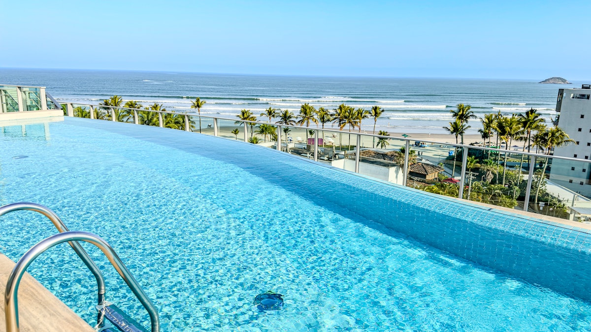 Apartamento 263 m2 de frente ao mar, com fantástica vista para toda a praia de São Lourenço e da Riviera. Grande varanda fechada com vidros circundando todo apartamento. Com 4 quartos, sendo 2 suítes, todos com armários embutidos. Ar condicionado em todos os cômodos. Televisão e acesso a internet de 120 mega. Excelente sala de jantar e cozinha conjugados com mesa p/+de 10 pessoas. Churrasqueira e mesa na varanda. Condomínio com grande conjunto de piscinas, academia e sauna. 3 vagas de garagem.