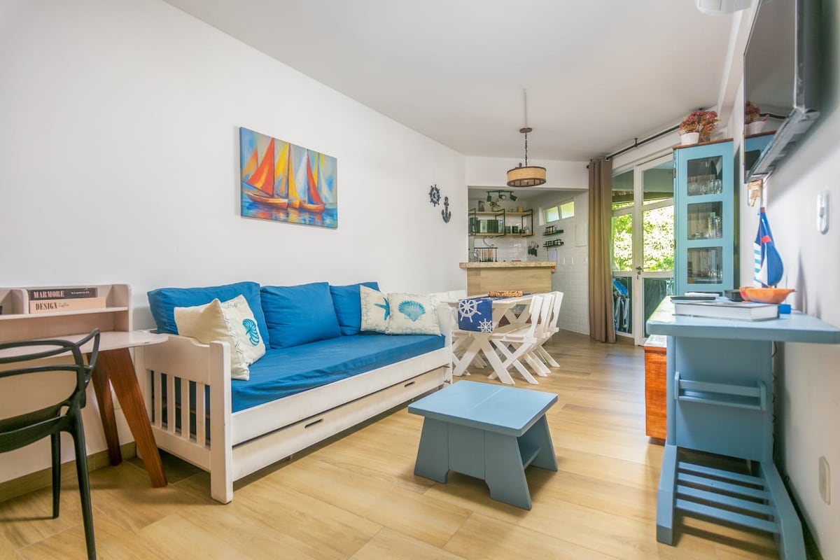 O Apartamento é muito cômodo, bem decorado e com toda certeza muito confortável. Podem fazer a maioria das coisas caminhando, não há necessidade de carro tudo aqui é próximo! como praia, orla bardot, estatua dos 3 pescadores, rua das Pedras.Na orla você terá acesso as praias mais frequentadas!! Lugar tranquilo que oferece o que necessita. Há um bom comércio com farmácia,mercados, hortifrutti ,lanchonetes,restaurante.Não temos garagem,porem temos uma rua muito segura.