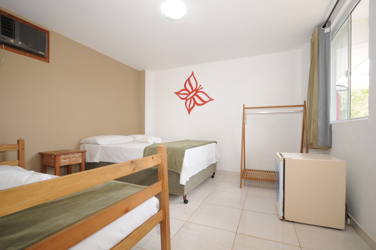• Acomodação Inclui: Camas: 1 Casal + 1 Solteiro auxiliar. • Conforto: Lençol, fronha, travesseiro e cobertor. • Comodidades: Ar-condicionado; TV; Wi-Fi; Frigobar; Mini Cozinha (cafeteira, mesinha, xícaras/talheres). • Banheiro: Chuveiro boiler (água quente) e toalhas de banho/rosto. • Café da Manhã Cortesia: Para começar bem o dia, oferecemos itens de cortesia: Pão fresco, torradas e queijo; Café (pó), açúcar e adoçante; Delícias sazonais.