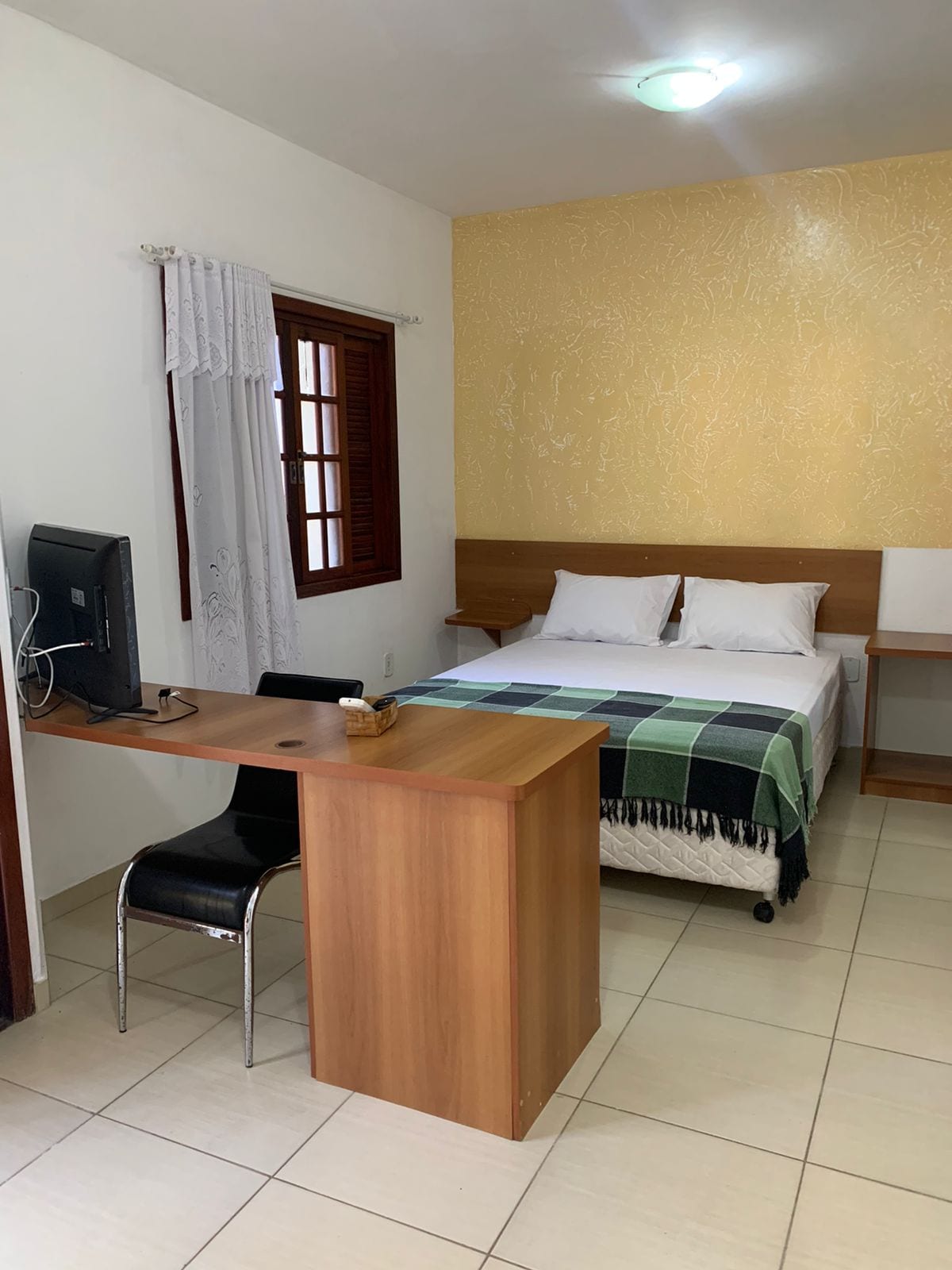 A suíte 04 é equipada com 1 cama de casal, TV smart, frigobar e ar condicionado.