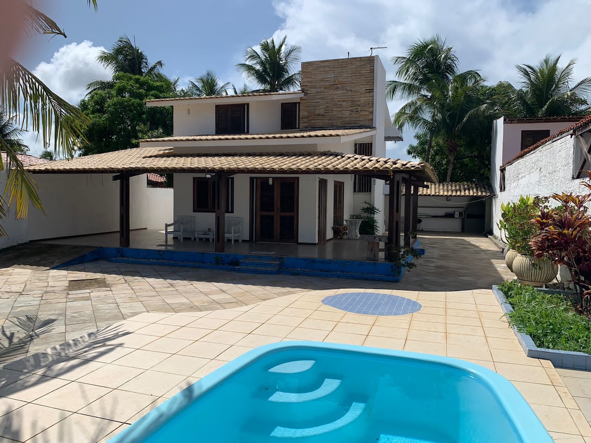 De frente para o mar, a casa acomoda 9 pessoas e possui excelente área externa, com churrasqueira, chuveirão e garagem. Sala com TV, sofá e mesa de jantar, cozinha equipada e área de serviço. 03 quartos (2 suítes com varanda). Todos os quartos possuem ar condicionado. 3 banheiros recém reformados e 1 lavabo. Casa fica em condomínio seguro, com porteiro, e excelente área de lazer com piscina. Fica próximo a um mercadinho e na rua do condomínio há uma deliciosa pizzaria.