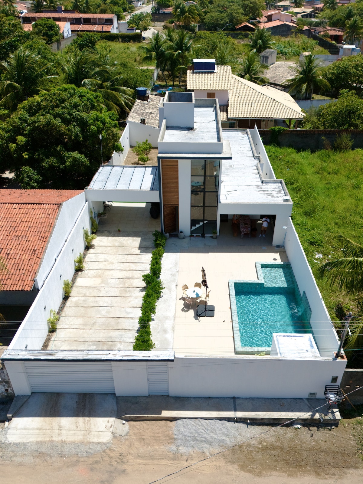 A casa foi projetada com muito carinho, pensando na comodidade de todos da família, optamos por todos os quartos serem suítes. Apesar da casa ser relativamente pequena todos os cômodos são bem divididos. Dispõem de três suítes, todas com ar-condicionado e chuveiro elétrico. A varanda é um ótimo local para apreciar a paisagem na rede. A cozinha americana toda equipada e integrada com a sala de jantar e sala de estar. A casa dispõe de um lavabo. E o chuveirão no terraço é ótimo para refrescar.