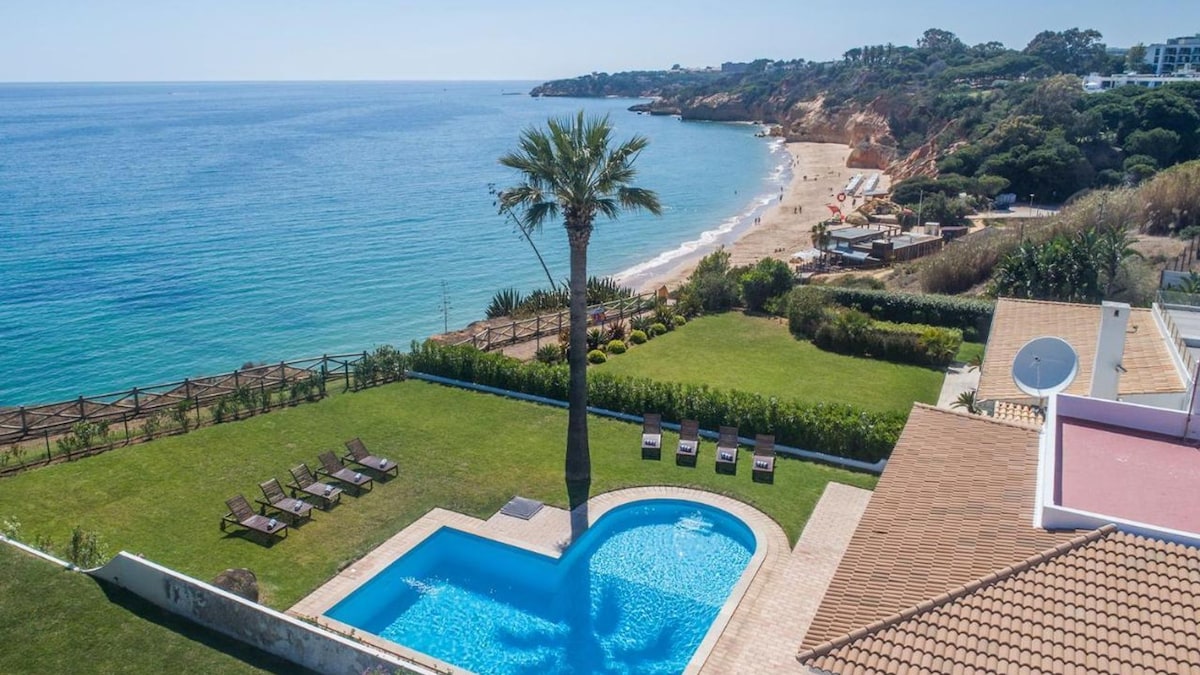 Amazing 180° Seafront view with private heatable swimming pool 2 bedrooms, 1 living room, 1 dining room, 1 fully equipped kitchen, 2 bathrooms, 2 terraces. Recently refurbished and fully equipped. Modern and stylish. Fantastic views over the ocean and Albufeira's beach/city. Private swimming pool with ocean view. Central location. Easy parking. All commodities within 100 meters. 4 minutes walk from the beach. The apartment is on the 3rd (and last) floor of a 3 storey typical Algarvian villa.