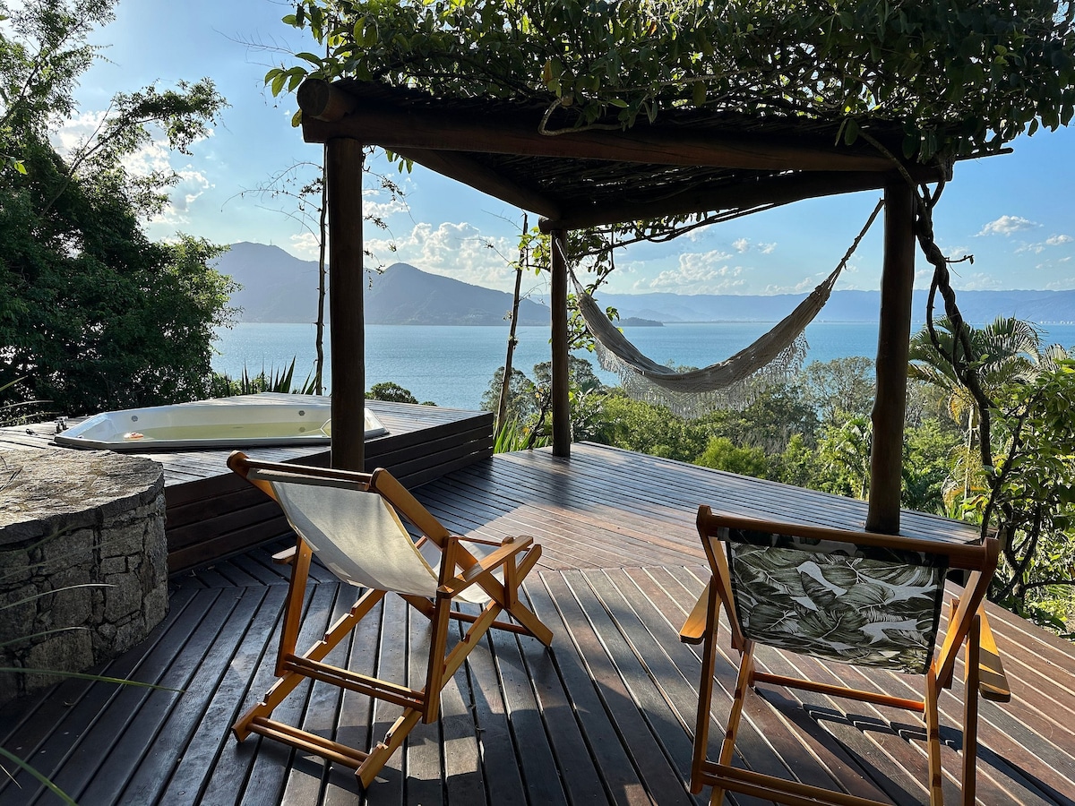 Este lugar único tem um estilo próprio. Um espaço recém criado, completo pra proporcionar uma experiência incrível, frente mar , pé na areia, cercada de natureza! Cabana estilo loft com hidromassagem em uma varanda totalmente envidraçada, uma vista surpreendente! Cozinha equipada, Cafeteira Dolce Gusto, Geladeira Dúplex, coock top, micro-ondas. Banheiro com Chuveiro pressurizado. Roupa de cama, mesa e banho. Cama de casal , sofá cama, rede suspensa. Piscina com Deck suspenso, acesso à praia.