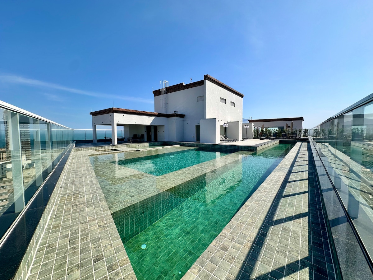 This 55m² apartment is ideal for couples and executives on business trips. It has everything you'd expect from an apartment: practicality and technology. For those coming to spend New Year's Eve in Santos, you can enjoy the festivities without even leaving the building. From the pool area, you can enjoy the sea view, the fireworks, and the city's festive atmosphere without having to deal with traffic, crowds, or a tiring commute after the fireworks.