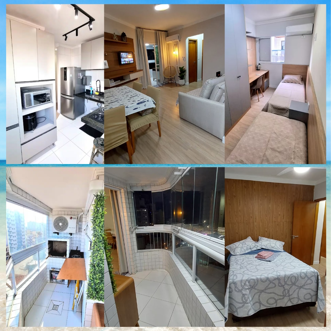 Apartamento reformado recentemente a poucos metros da praia Ocean de Praia Grande. Imóvel possui garagem e acomoda até 6 pessoas. venham nos conhecer! 😄