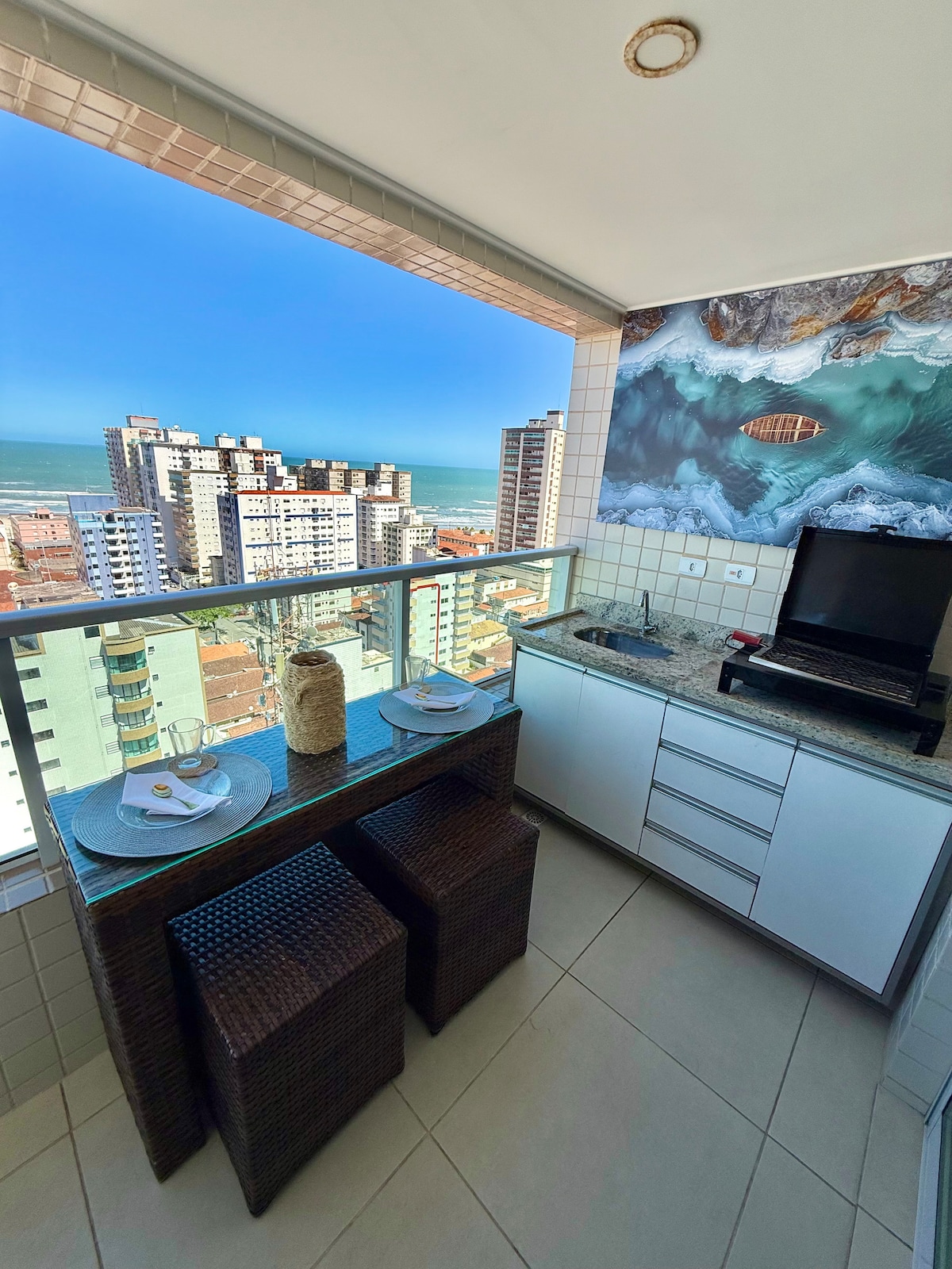 Lindo apartamento todo reformado com varanda de frente para o mar, vista panorâmica e wi-fi. Ótima localização da praia com acesso próximo a padarias, mercados, restaurantes e bares. Excelente calçadão com ciclo faixa para pratica de esportes e lazer. Esse apto fica localizado, na Praia Grande SP , Bairro aviação