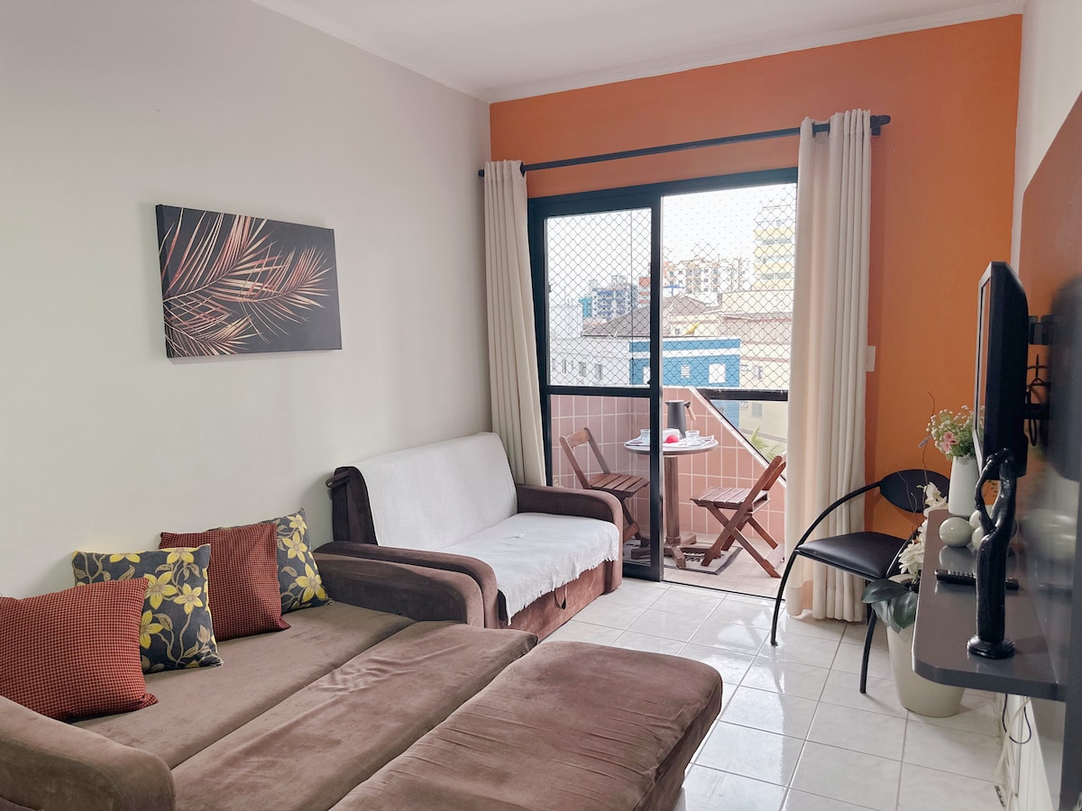 Apto 3 minutos a pé da praia, da calçada vc vê a orla da praia. 1 vaga de garagem no prédio, elevador, portaria 24h, fechadura eletrônica, varanda, 1 dorm com tv smart, cama king, ar condicionado, ventilador, 1 wc amplo. Sala espaçosa com sofá retrátil, tv smart, wi-fi, mesa de jantar e escrivaninha. Cooler, Roupas de cama, toalhas, secador e ferro. Localização top: próximo a mercados, padarias, barzinhos, farmácia, etc. Cozinha COMPLETA com filtro de água. Tem máquina de lavar e varal.