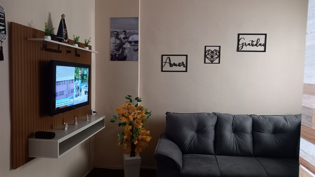 Muito conforto e comodidade para você e sua família se sentirem em casa . Além da cama Queen no quarto, tem mesa de escritório com cadeira confortável, caso precise trabalhar (Wi-Fi de alta velocidade ) ,televisão de 40 polegadas ,ar condicionado no quarto. Tábua e ferro de passar roupa . Roupa de cama, travesseiro e cobertor. Na sala, televisão 4k e Wi-Fi com 300 megas . Ventilador de teto , sofá retrátil e uma bicama com colchões confortáveis e mais 2 colchões avulsos.