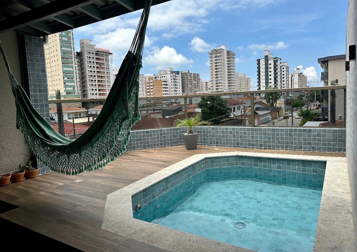 BEACHFRONT Studio in José Menino, Santos, SP. SIDE SEA VIEW. HANGING BED. CLIMBING WALL. Comfortably accommodates 2 adults (queen-size bed) and 2 children (double-size bed). :. 350-megabyte Wi-Fi :. Hot/cold air conditioning :. 32-inch Smart TV :. Electronic lock :. Kitchen (filter, refrigerator, cooktop, microwave, Nespresso machine, mixer, and pots) :. Washer/dryer :. Window screen :. Outlet protectors :. 220V voltage :. Rotating parking space, subject to availability.