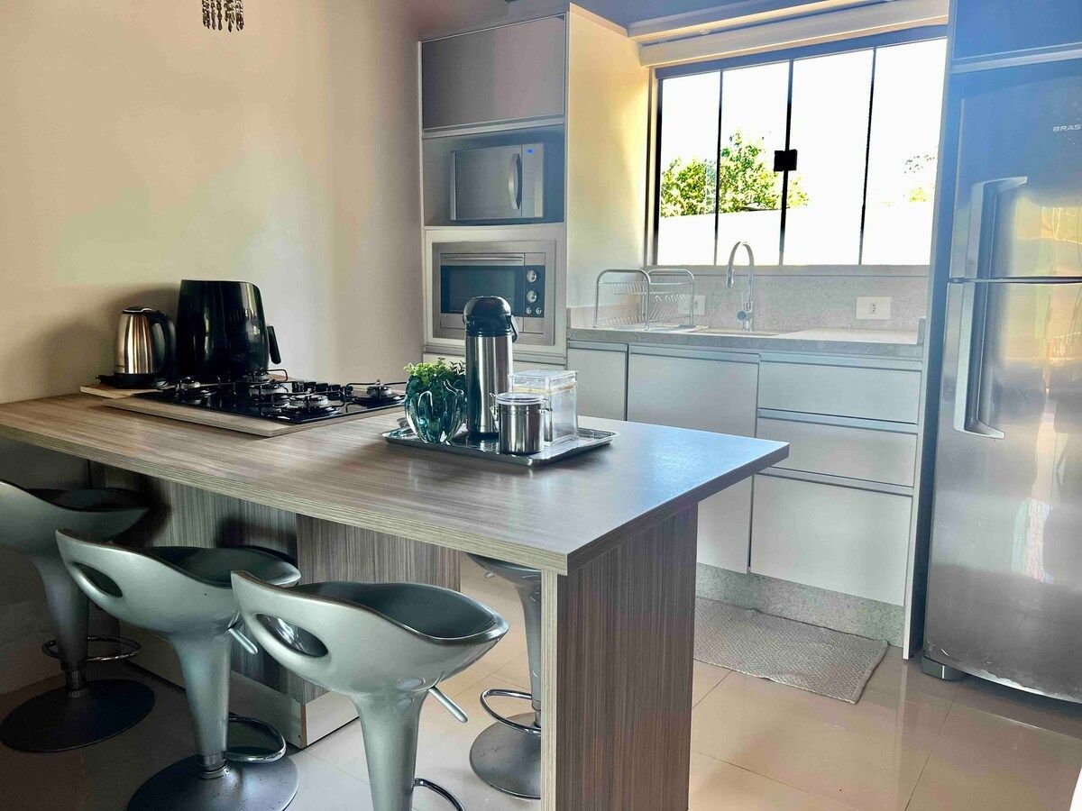This apartment exudes an atmosphere of serenity and modernity, with carefully selected decor to provide a unique experience for our guests. Relax on the beautiful balcony and let yourself be enchanted by the breathtaking view that stretches out before you. In our amazing condominium, you will have exclusive access to a refreshing swimming pool, where you can enjoy relaxing moments under the sun. If you are looking for peace, comfort and a memorable stay, this is the perfect place for you.