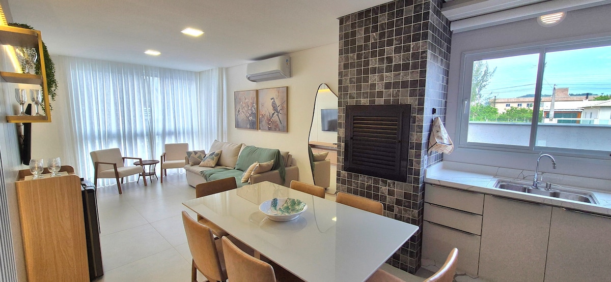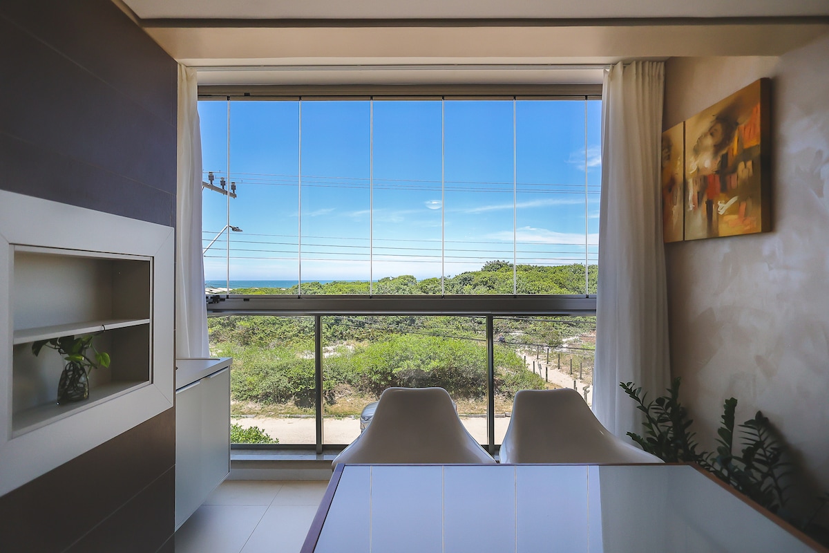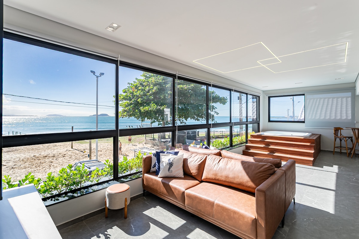 Vista incrível frente mar, pé na areia, 30 metros da praia, apto novo com 200 metros quadrados, Wi-Fi 500 Mbps, piso de madeira, ar condicionado em todos os ambientes, Jacuzzi privativa aquecida/Hidromassagem na sacada frente mar, living amplo e integrado à cozinha equipada, churrasqueira frente mar, lavanderia e duas garagens cobertas. Localização privilegiada, próximo à padaria, restaurantes, bares, hamburgueria, gelateria, supermercado, onde se consegue fazer tudo a pé!
