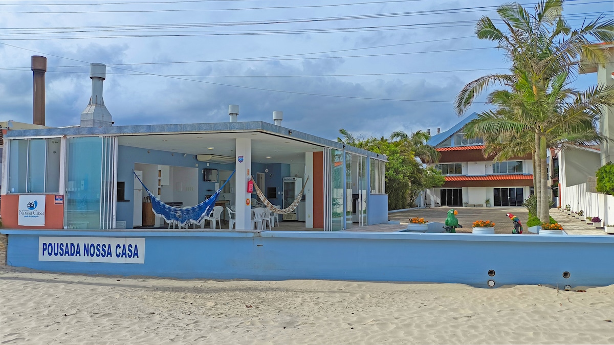 Casa em frente à praia do Siriú, Garopaba... lugar fantástico, durma com o som do mar! Casa suporta 08 hóspedes confortavelmente. Espaço muito aconchegante! De verão a verão... de Dezembro a março, com sua alta temporada. Abril a maio, com o famoso veranico. Maio e junho, a tradicional pesca da tainha artesanal. De julho a novembro, a visita das baleias. "Onde se avista de dentro de casa"!! Casa no segundo piso, acesso por rampa! Garagem coberta para dois carros.