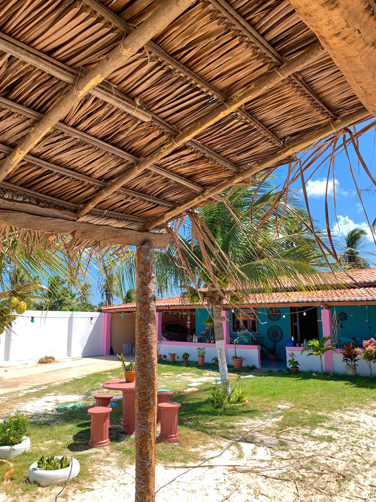 We are proudly renting our holiday home in Praia de Redonda, Icapui. Located, right above the beach, with a spectacular panoramic ocean view. A quiet location in direct contact with nature, to relax and recharge your batteries. Our house lays on huge 530 m² garden with palms, fruit trees and hammocks waiting for you. Only a 10 minute walk from the beach down the hill. We provide fresh bed linen, towels, a fully equipped kitchen and private parking area for your car.