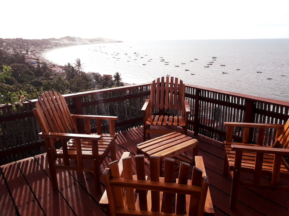 We are proudly renting our holiday home in Praia de Redonda, Icapui. Located, right above the beach, with a spectacular panoramic ocean view. A quiet location in direct contact with nature, to relax and recharge your batteries. Our house lays on huge 530 m² garden with palms, fruit trees and hammocks waiting for you. Only a 10 minute walk from the beach down the hill. We provide fresh bed linen, towels, a fully equipped kitchen and private parking area for your car.