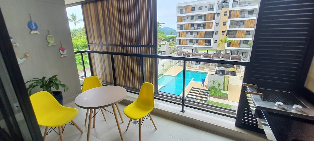Lindo lugar Condomínio novo. Studio com 51m, mobilidado, eletrodomesticos, Enxoval Completo e de qualidade. Área de lazer completa na cobertura (piscina com borda infinita, saunas seca e Úmida, academia e brinquedoteca. A vista da área de lazer é espetacular! Você pode acessar a praia do Flamengo ou Sete Fontes por trilha, se preferir vários passeios de Escuna ou barco, tudo isso disponível a menos de 200 metros do Condomínio. Não perca esta oportunidade.