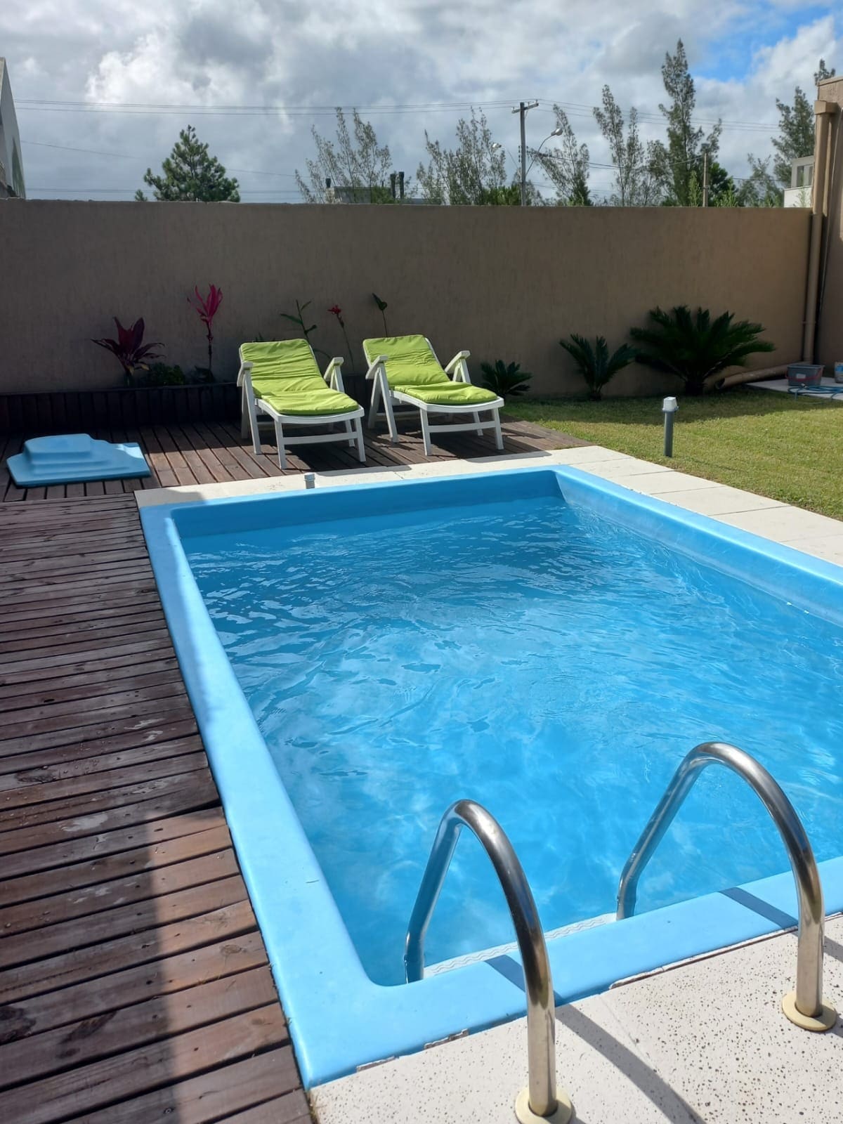 Casa com piscina, 2 quartos, sendo 1 suíte, ambos com ar-condicionado. Sala de estar aconchegante integrada com jantar. Cozinha completa com todos eletrodomésticos e utensílios. Lavanderia com máquina de lavar. Quintal espaçoso ideal p/ famílias. Localizada na entrada de Atlântida a 3,2 km da beira mar (6 min de carro), 3 min do Ramblas. Duas quadras de mercado, padaria e açougue. *Informe a quantidade exata de hóspedes ao fazer a reserva!