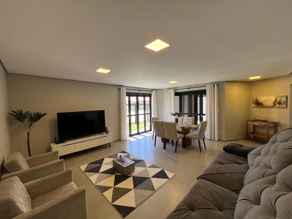 Casa em condomínio fechado , segurança 24 hs, a 300mts do mar, completa área de lazer compartilhado com piscina externa, piscina térmica, sauna, quadras de futebol, beach, vôlei, basquete, skate, padle, bocha, playgraud, brinquedoteca, academia, espaço caminhadas, corrida, bike, gramados, lago. Durante temporada verão temos restaurante, mercado, salão de beleza, casa de apoio beira mar com cadeiras, guarda-sol, banheiros e chuveiros. Não disponibilizamos roupas de cama (casal Queen) e banho