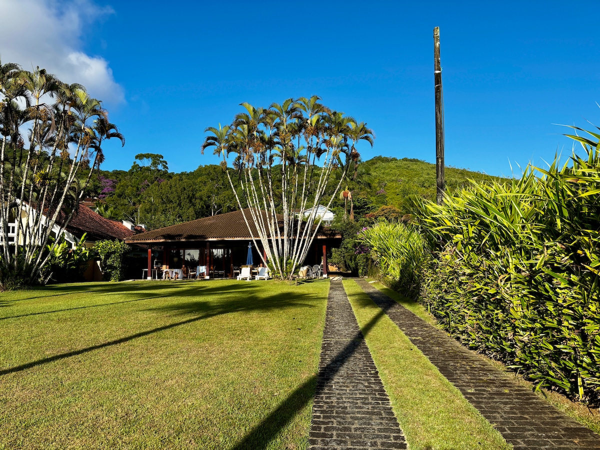 A place with the most incredible view of the sea, views of Flamengo Bay, Anchieta Island, Santa Rita Beach, Lamberto, Ribeira and others… With a private trail in the Atlantic Forest, 2 incredible viewpoints, small waterfalls with crystal clear water! With security and privacy, the Greece-themed house has a comfortable and structured 300m2, airy and fresh and with new air conditioning in all bedrooms. The closest beach is Lamberto Beach, you have to walk 400m, but we recommend going by car!